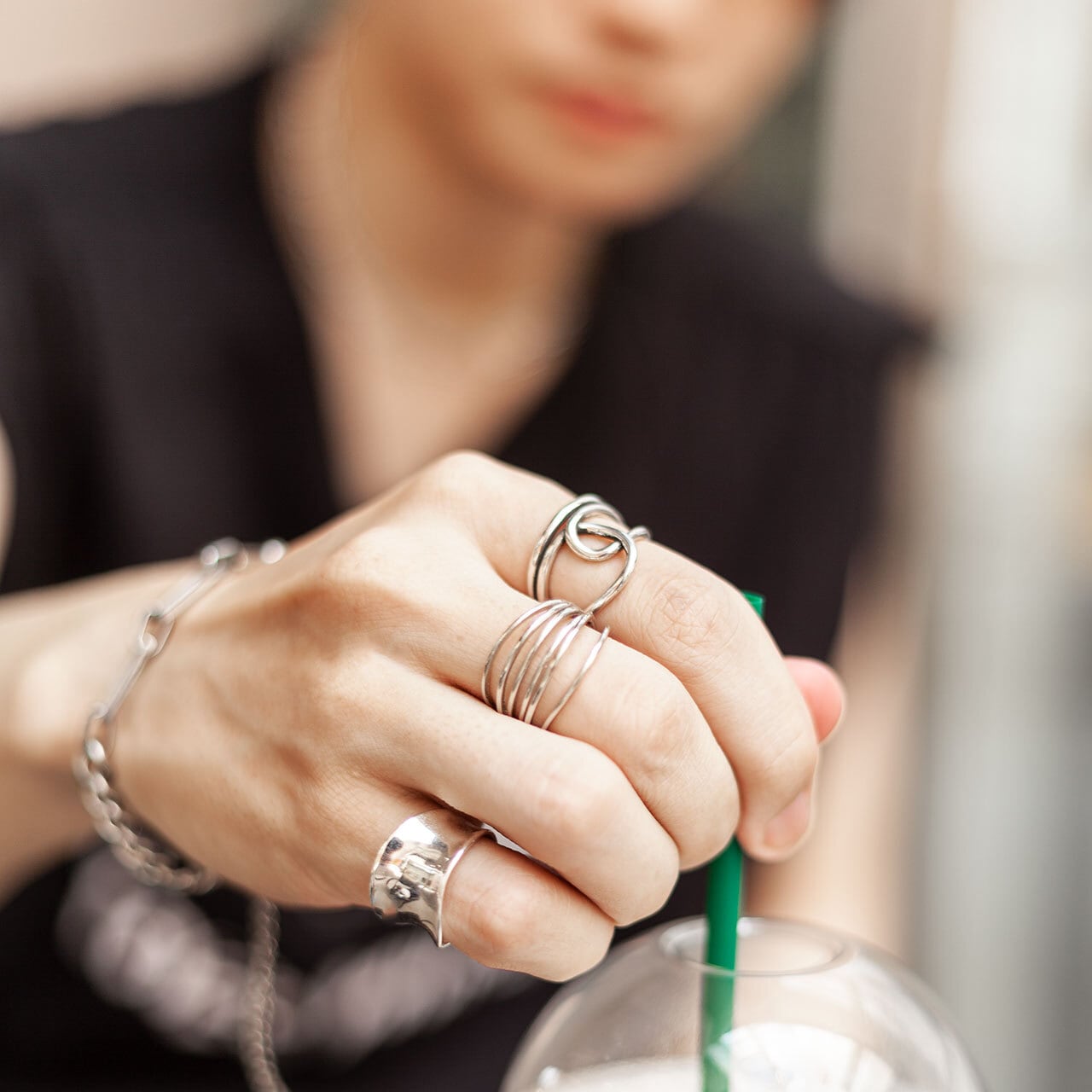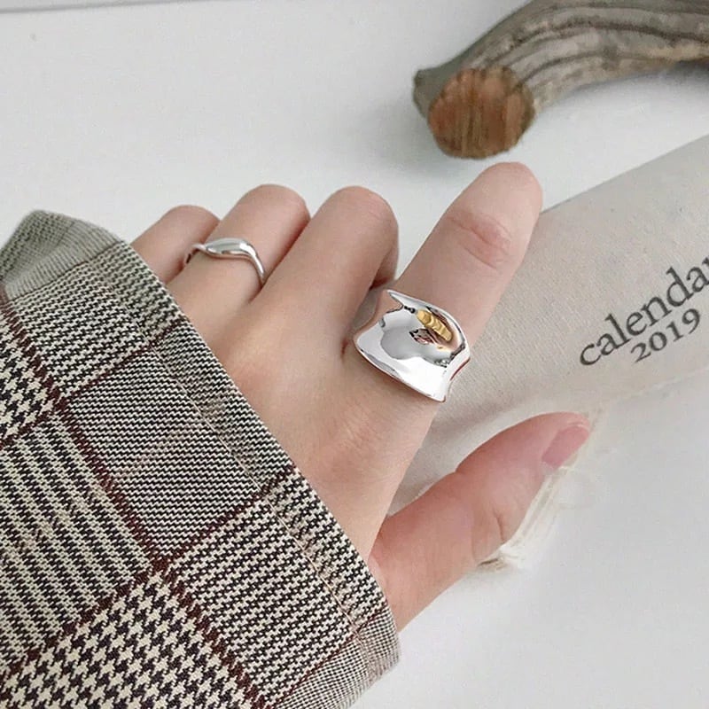 プレートは緩やかに波打ち、見る角度によって表情が違うのでつける指などによって楽しんでいただけます。