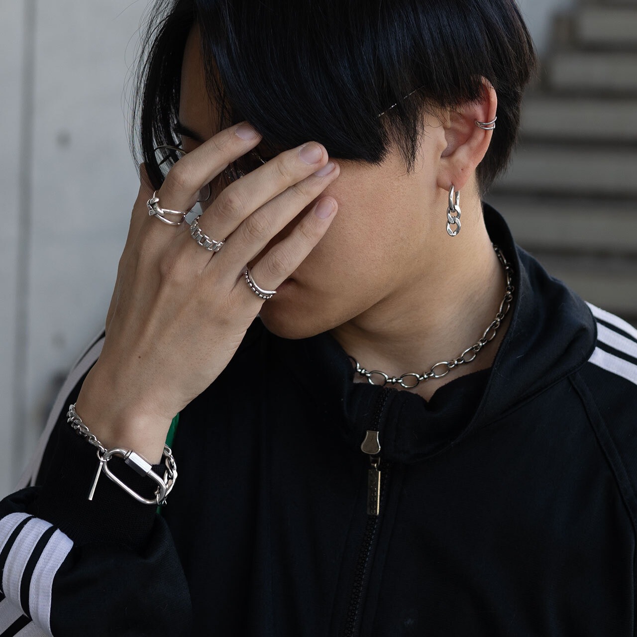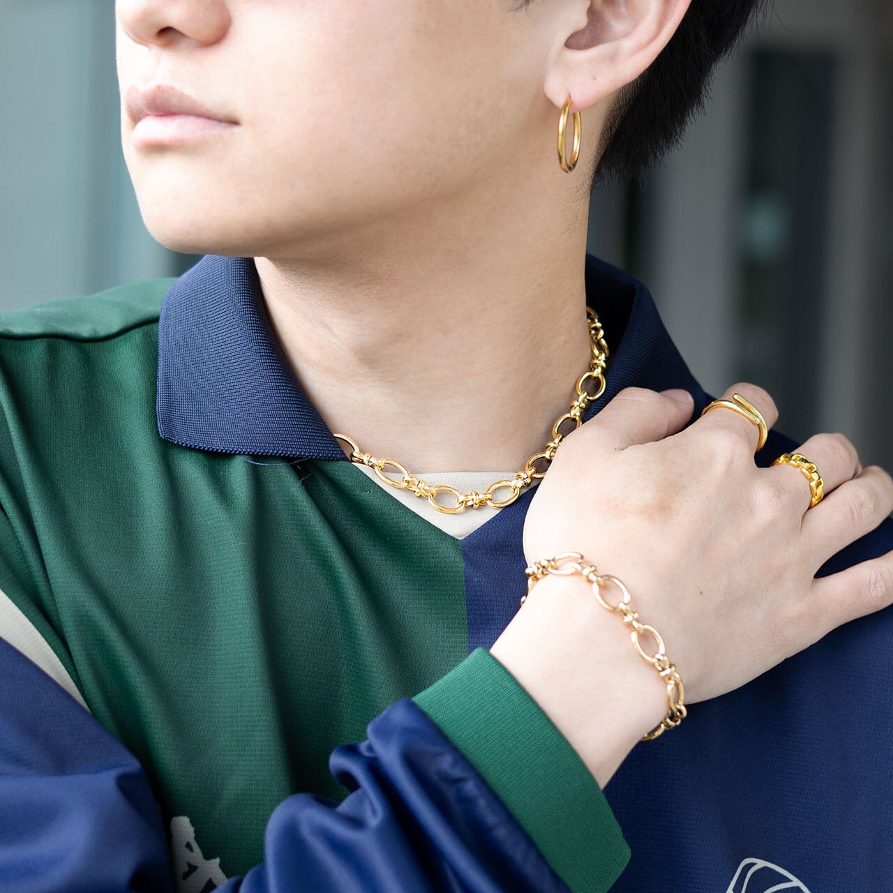 ブレスレットと合わせて統一感も演出。